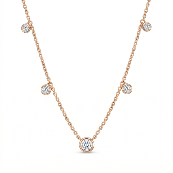 14K Rose Gold 5-Diamond Bezel Station Necklace GPD211