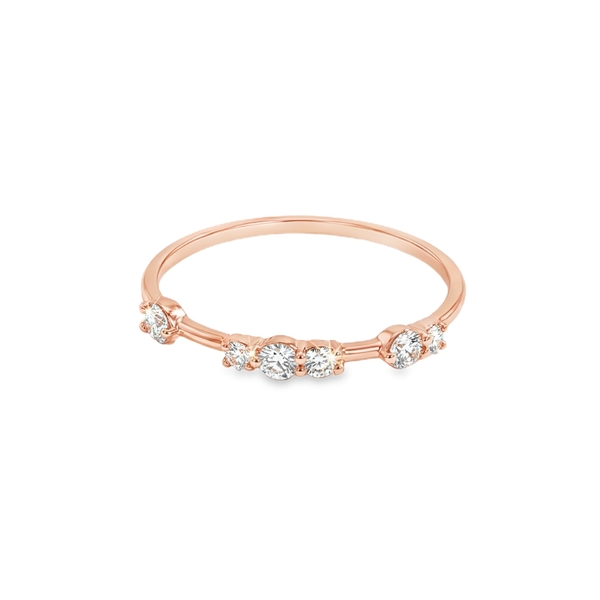 Experience the pinnacle of delicate craftsmanship with this elegant 14K rose gold diamond ring. Specifically designed for those who appreciate the “less is more” aesthetic, this piece is a dainty masterpiece made to perfection. The warm, blush tones of the rose gold provide a romantic backdrop for a curated cluster of high-clarity diamonds. At the heart of this design are round brilliant-cut diamonds with a total weight of 0.22 carats. These stones are truly exceptional, boasting a VVS clarity and an F colour grade.