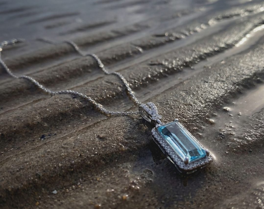 Elevate your jewelry collection with the stunning 18K Aquamarine Diamond Pendant. This piece radiates tranquil beauty and modern charm. First, the pendant features a majestic 3.42-carat natural Aquamarine. Master jewelers expertly set this stone in a sophisticated rectangular emerald cut. Consequently, the icy blue gemstone serves as a definitive statement of luxury for any fine jewelry enthusiast.