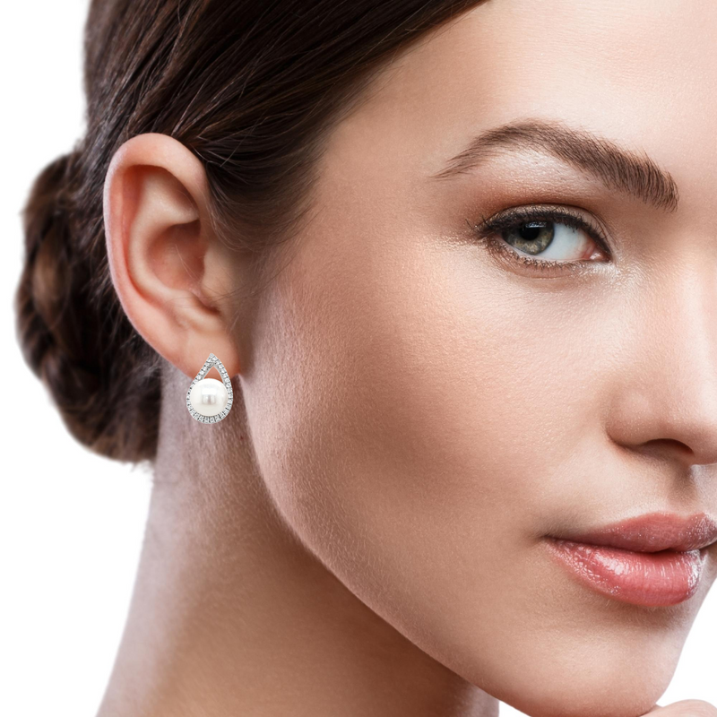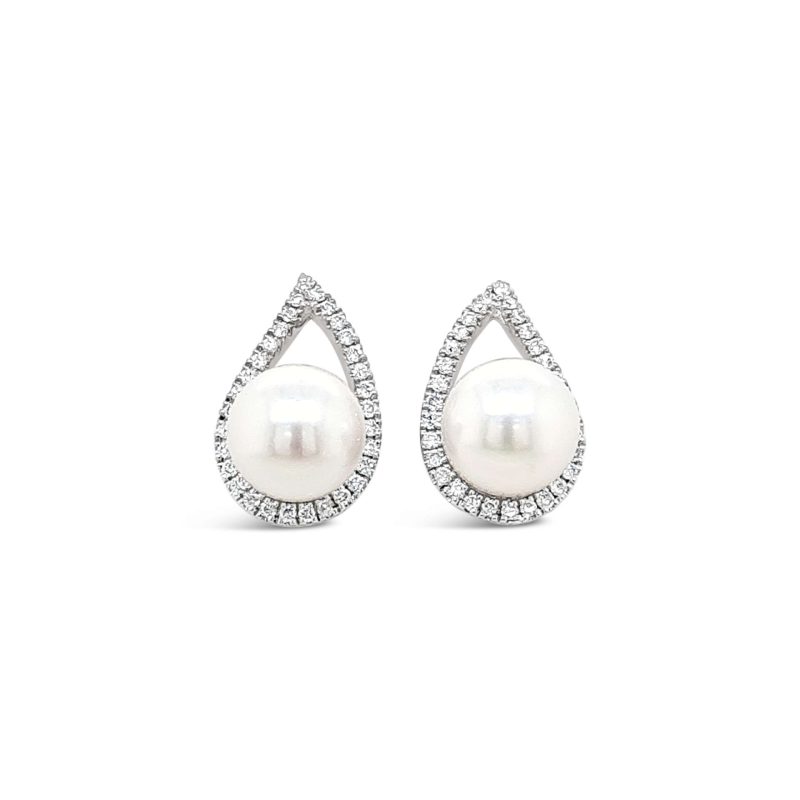 18K Gold Akoya Pearls Diamond Earrings GED030