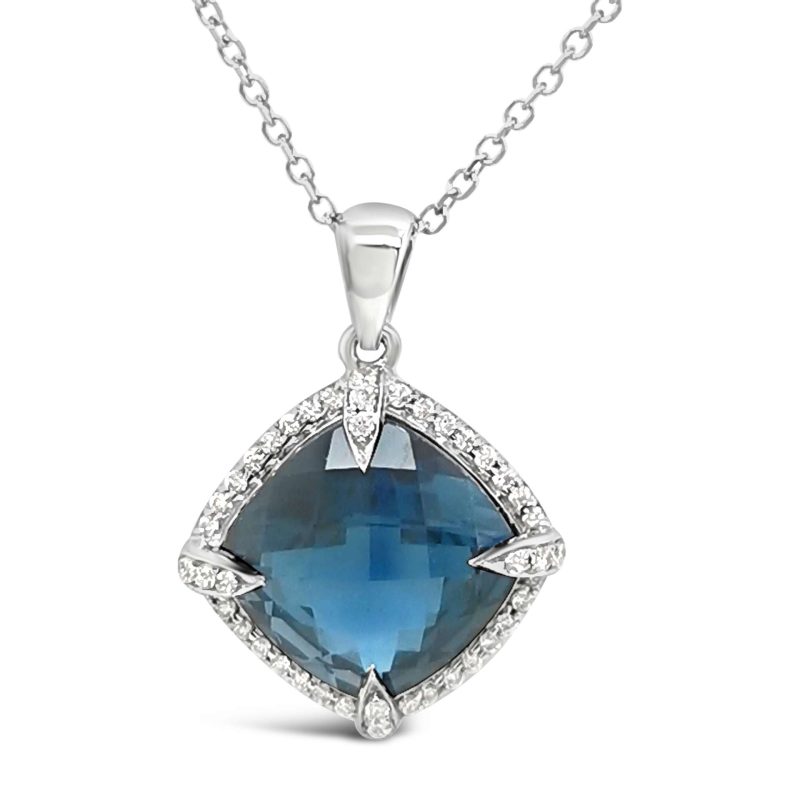 18K White Gold Pendant with Natural Diamonds and a Natural London Blue Topaz.