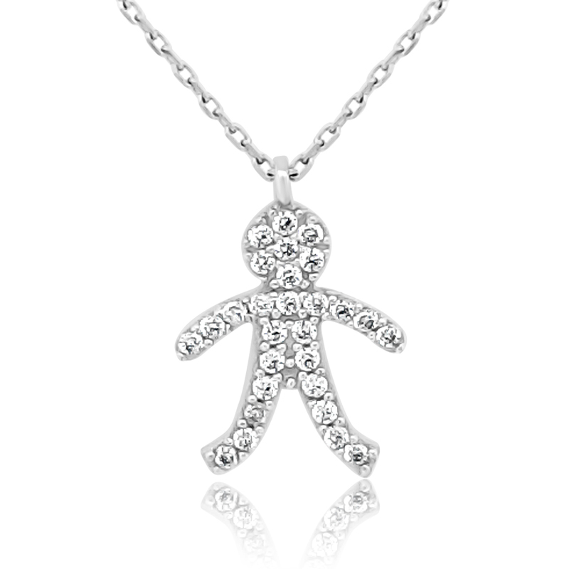 18K White Gold Boy Charm Pendant with Cubic Zircons.