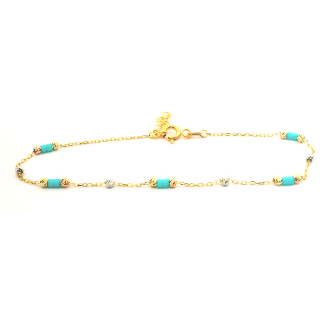 Elevate your summer style with our 18K yellow gold bracelet. This dainty bracelet exudes elegance and charm, making it the perfect accessory to add a pop of color to any outfit, while the turquoise stones bring a refreshing and summery vibe.