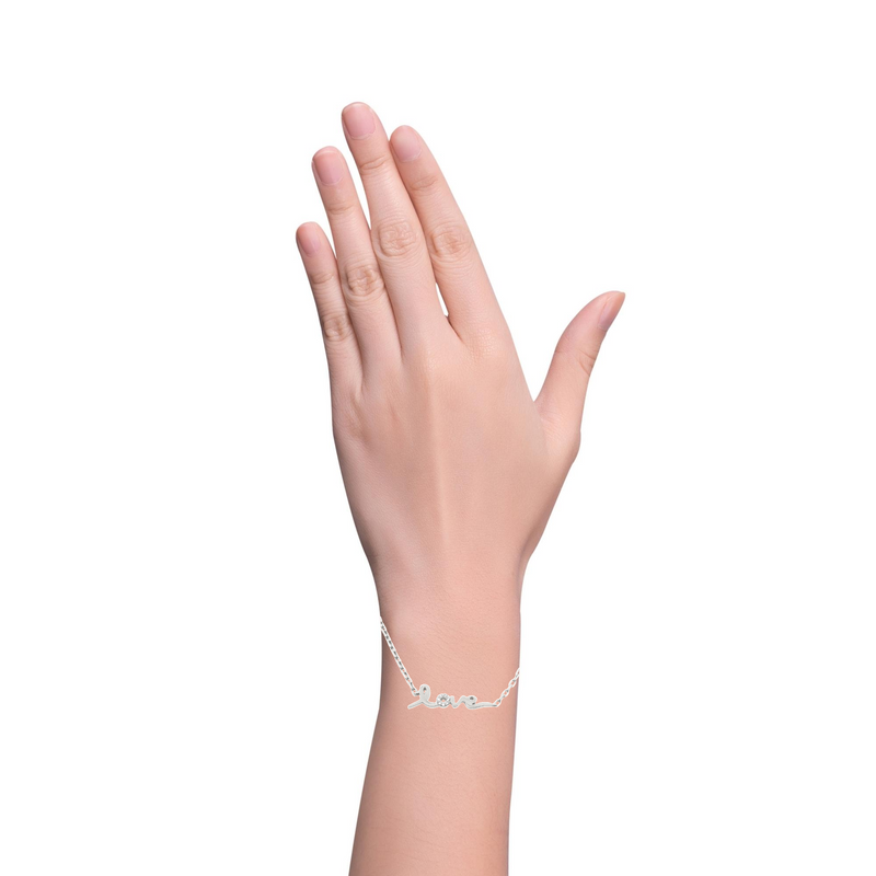 18K white gold bracelet, a true masterpiece that captures the essence of love with its handwritten design and dazzling diamonds. Crafted meticulously with skilled craftsmanship, this bracelet emanates elegance and sophistication, making it an ideal symbol of affection to honor special moments or cementing bonds between loved ones.