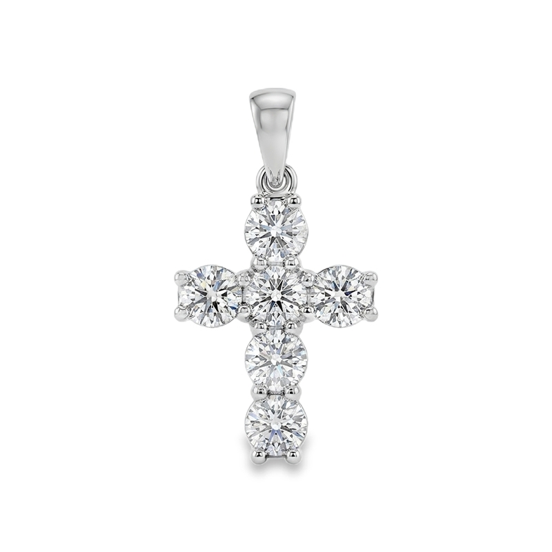 Each diamond is graded with a VS clarity and G colour, ensuring a bright, white sparkle that radiates sophistication. The pendant’s classic silhouette makes it a versatile addition to any jewelry collection, perfect for commemorating special milestones or as a daily statement of faith.