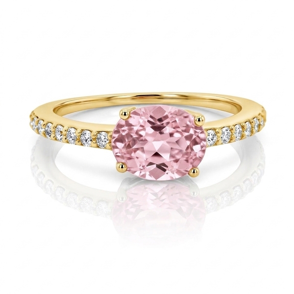 At the heart of this stunning ring lies a magnificent 1.12 carat Sapphire, showcasing a beautiful, soft pink hue and an alluring oval cut, securely held by classic prongs to enhance its natural brilliance. Adding to its sophisticated charm are 0.22 carats of brilliant-cut diamonds, meticulously pave-set along the upper half of the 18K yellow gold band, boasting an impressive VS/G clarity and color grade for exceptional sparkle that beautifully complements the central sapphire. Fashioned from premium 18K yellow gold, the band offers a rich, warm luster, ensuring comfortable wear and enduring beauty, making this ring a piece to cherish for a lifetime.