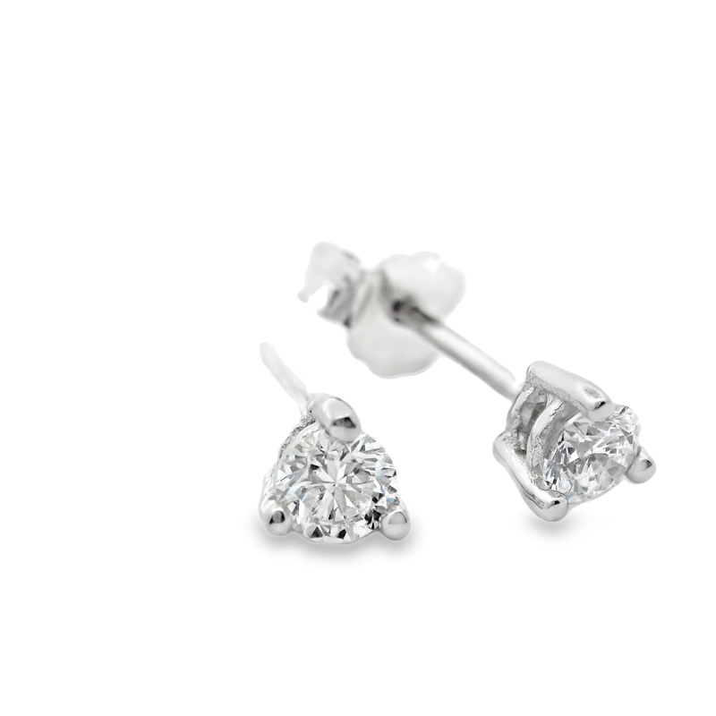 This pair of stud earrings in 18K white gold feature a classic design with round brilliant cut diamonds set in a prong setting. The sparkling diamonds have a total weight of 0.40cts, ensuring they catch the light beautifully with every movement. These earrings are versatile and can be worn with various outfits and occasions.