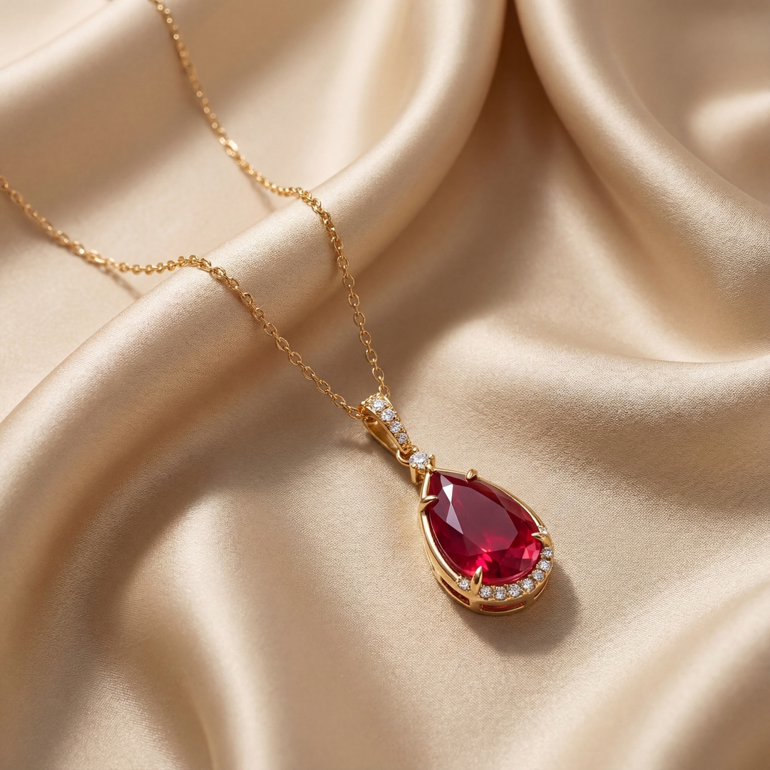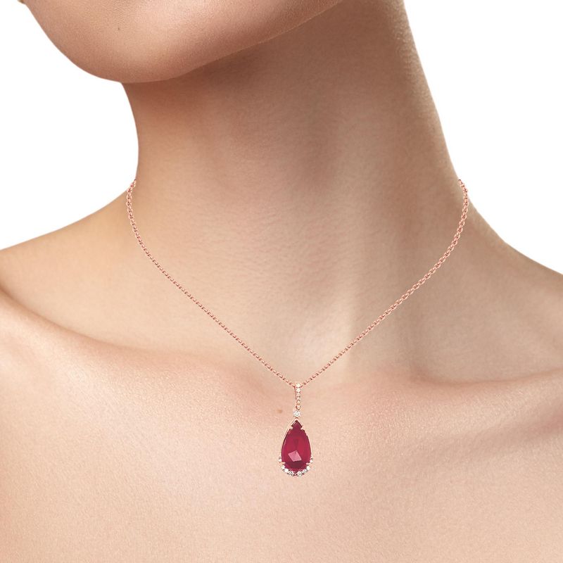 The Rose Gold Rhodolite Garnet Drop Pendant is designed for the modern connoisseur. This luxurious piece is handcrafted in 18K rose gold, featuring a classic 18K rose gold cable chain. The pendant highlights a magnificent 3.65 carat pear-shaped Rhodolite Garnet, whose rich hue is framed by 0.15 carats of shimmering, round brilliant cut diamonds on the halo and bail. This timeless drop pendant seamlessly blends deep color with brilliant sparkle.