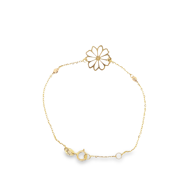 A delicate, dainty 18K yellow gold bracelet with a flowery design. This darling bracelet it is so cute and is perfect for little girls.