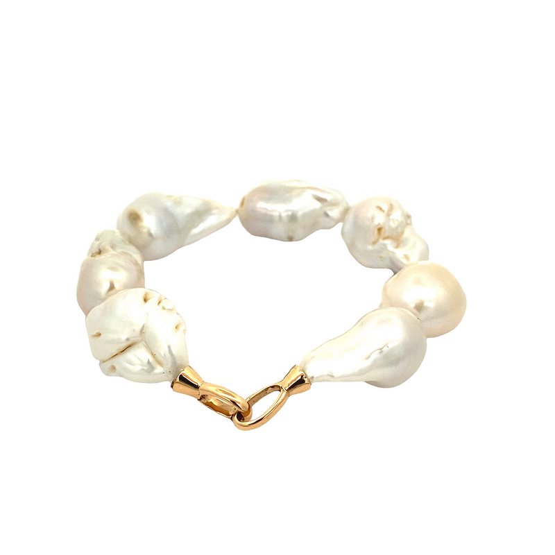 Introducing our stunning Keshi pearl bracelet with an exquisite 18K gold clasp. Designed to captivate and enhance your sophistication, this remarkable piece effortlessly combines the timeless beauty of Keshi pearls with a touch of opulent charm.The focal point of this bracelet lies in its mesmerizing selection of Keshi pearls.