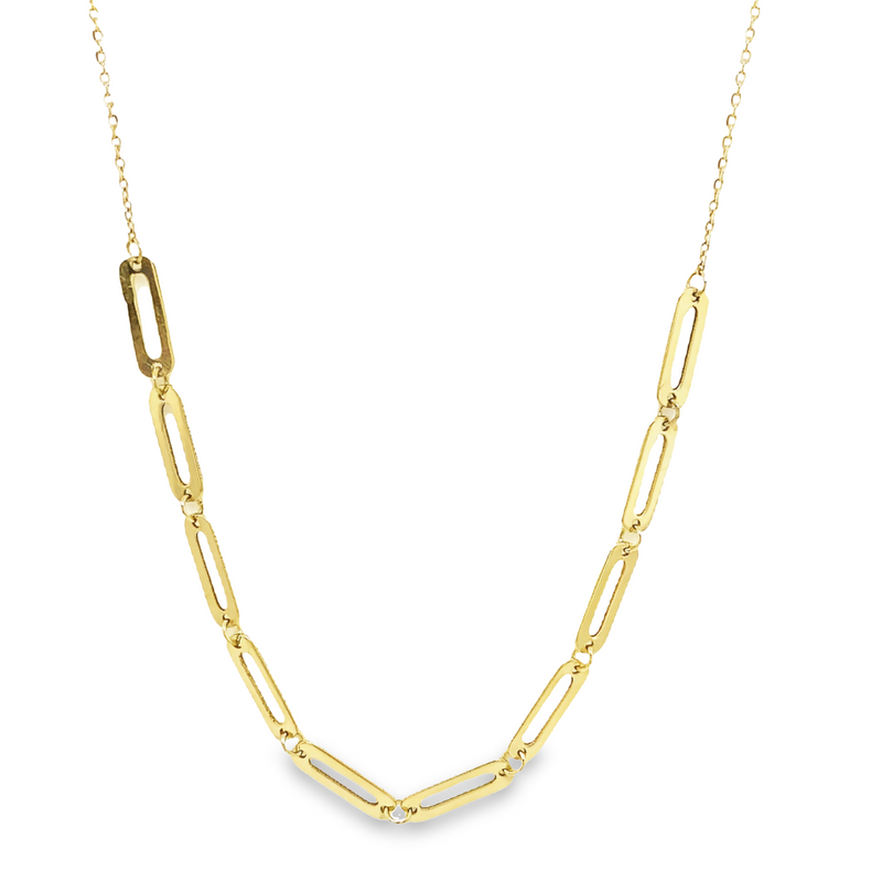 Introducing our exquisite 18K yellow gold necklace, expertly crafted to elevate your style and showcase an unmatched elegance. This luxurious piece features beautifully designed links that interlock effortlessly, creating a harmonious flow around your neck. The necklace’s captivating gleam is a testament to its high-quality 18k yellow gold composition, offering a radiant, timeless charm.