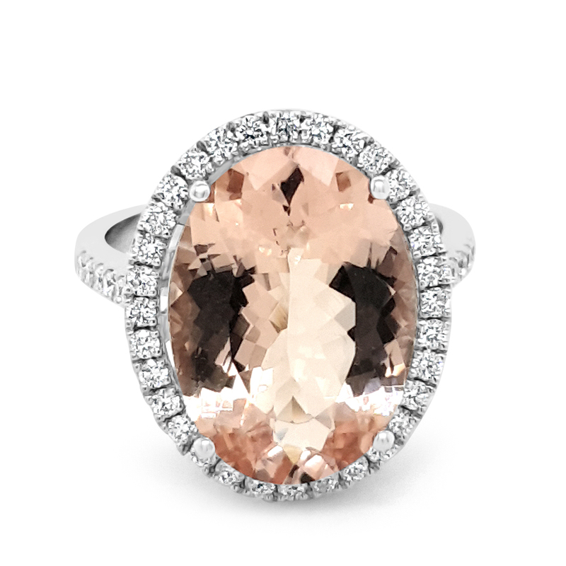 18K White Gold Ring with Natural Diamonds and a Natural Morganite.