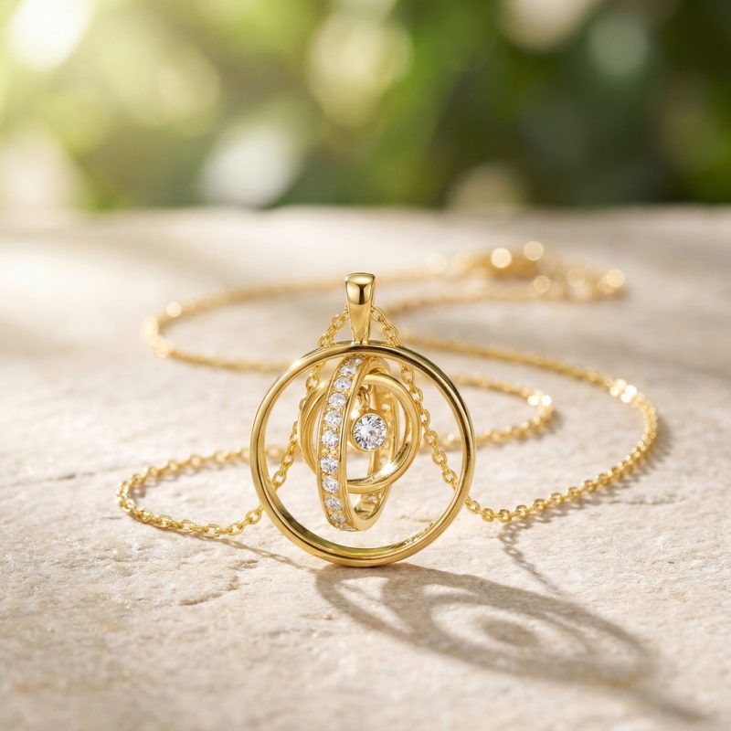 This stunning 18K gold necklace is the ultimate statement of modern luxury and timeless design. When you choose an 18K gold necklace, you are investing in a piece that perfectly balances purity with durability. This specific design features a series of interlocking celestial rings, crafted in rich yellow gold, and accented with brilliant-cut cubic zirconia stones. Whether you are dressing up for a formal gala or adding a touch of sparkle to your daily office attire, this 18K gold necklace provides a sophisticated glow that never fades.