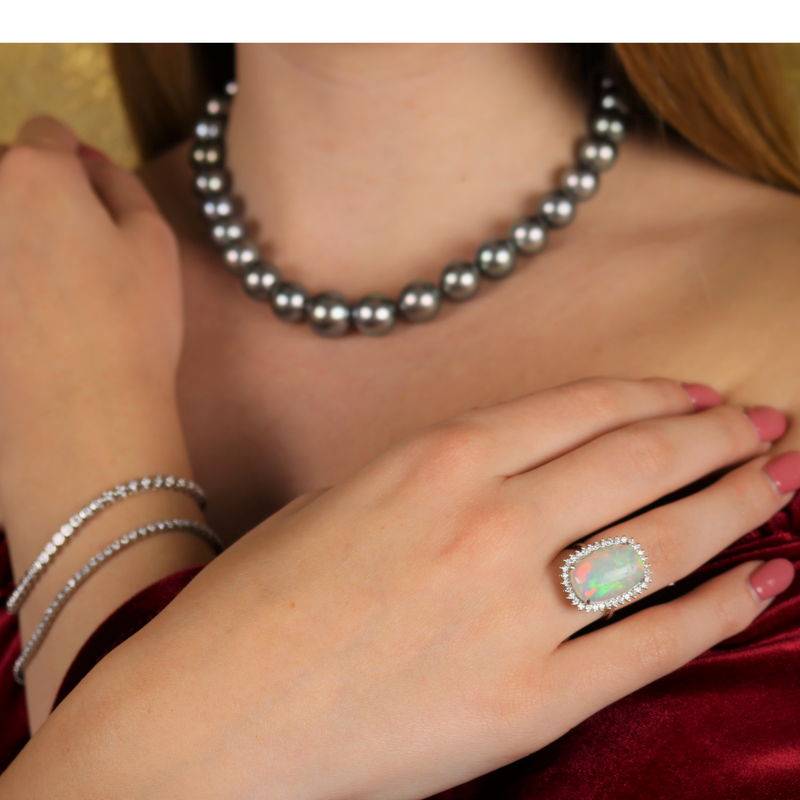 18K White Gold Ring with Natural Diamonds and a Natural Ethiopian Opal.