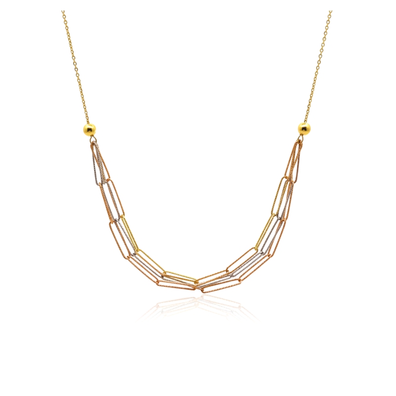 This stunning 18K Gold Oval Link Necklace showcases a series of polished, interlocking oval loops. We crafted each link from high-quality 18K yellow gold to ensure a radiant and lasting glow. The design features a unique combination of smooth, substantial links and delicate multi-strand chains. This mix of textures creates a sophisticated, modern aesthetic that catches the light beautifully from every angle.