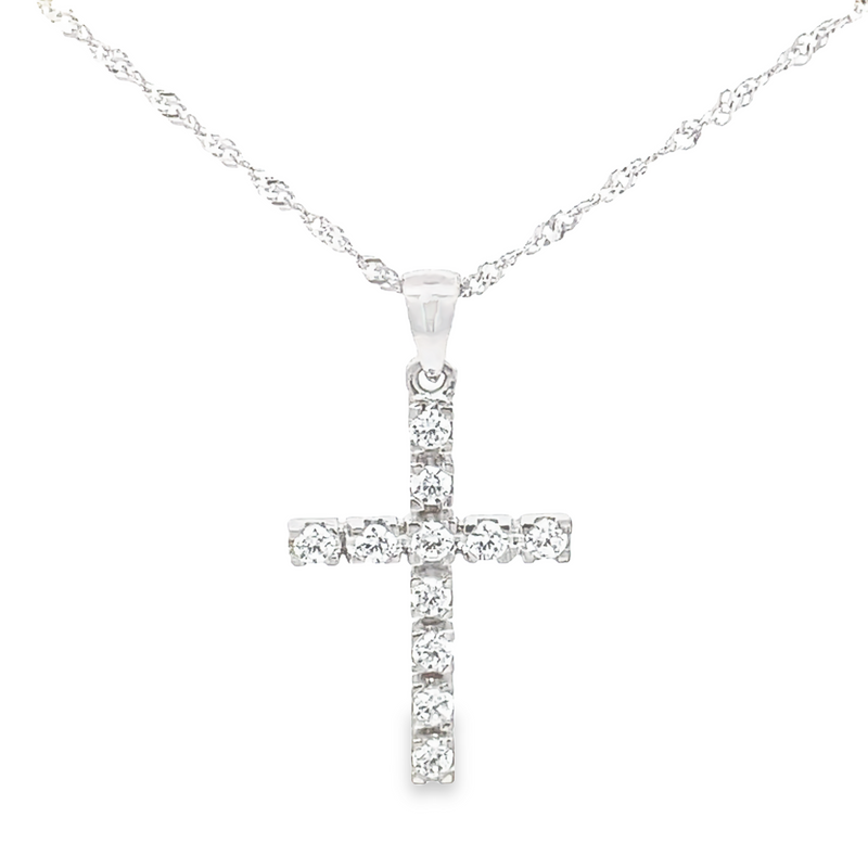 18K Gold Pave CZ Cross Pendant – Double Row Dazzle GC076