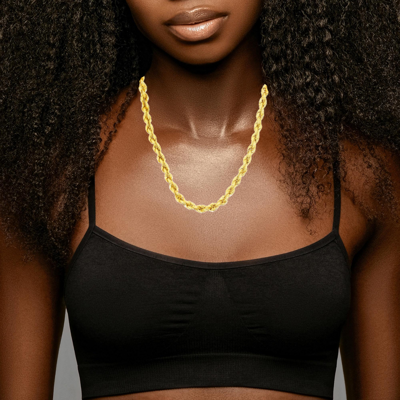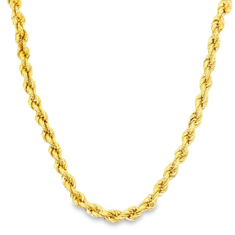 This is a classic rope chain necklace. This 18K yellow gold rope chain necklace is made of solid 18K yellow gold. The rope chain necklace has a length of 50 cm. The 18K yellow gold rope chain necklace is a timeless piece of jewelry.