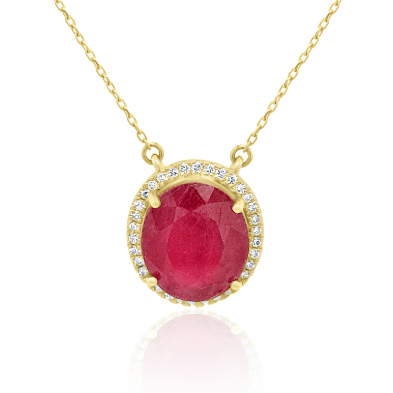 18K Yellow Gold Pendant with Natural Diamonds and a Glass Field Ruby.