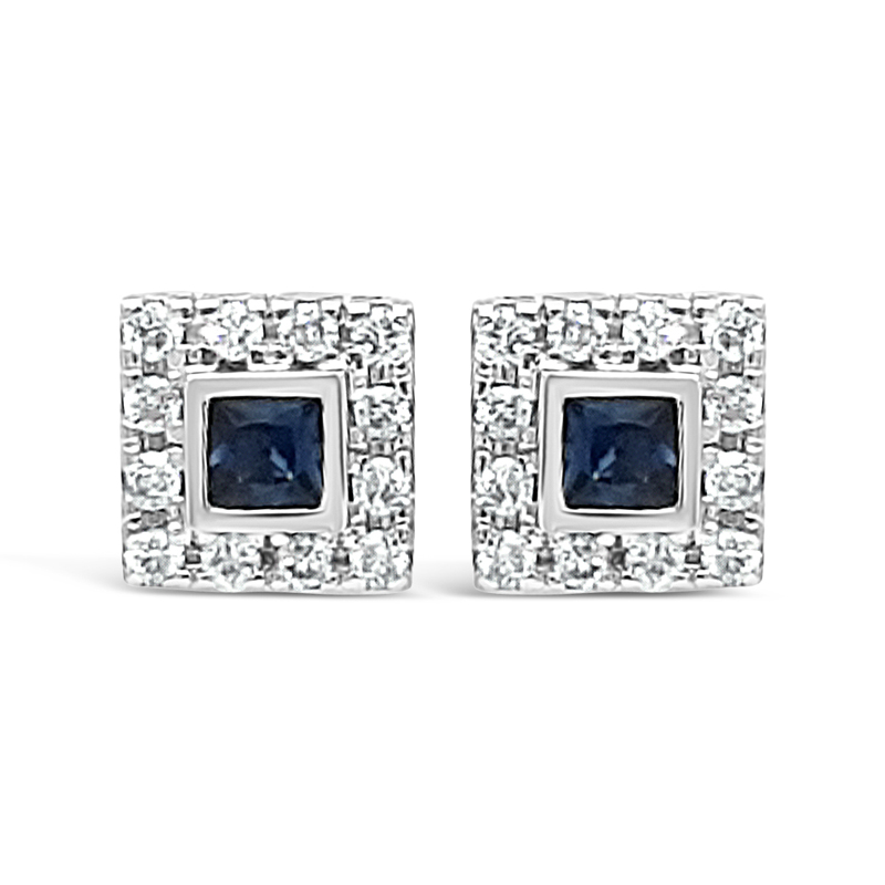 18K White Gold Pair of Earrings with Natural Diamonds and Natural Blue Sapphires.