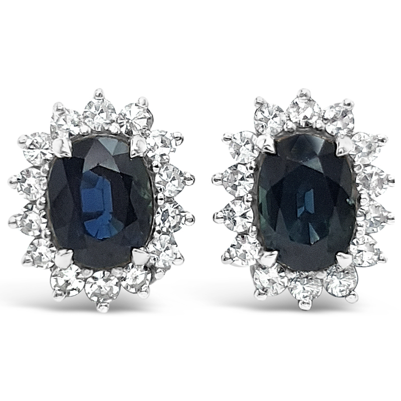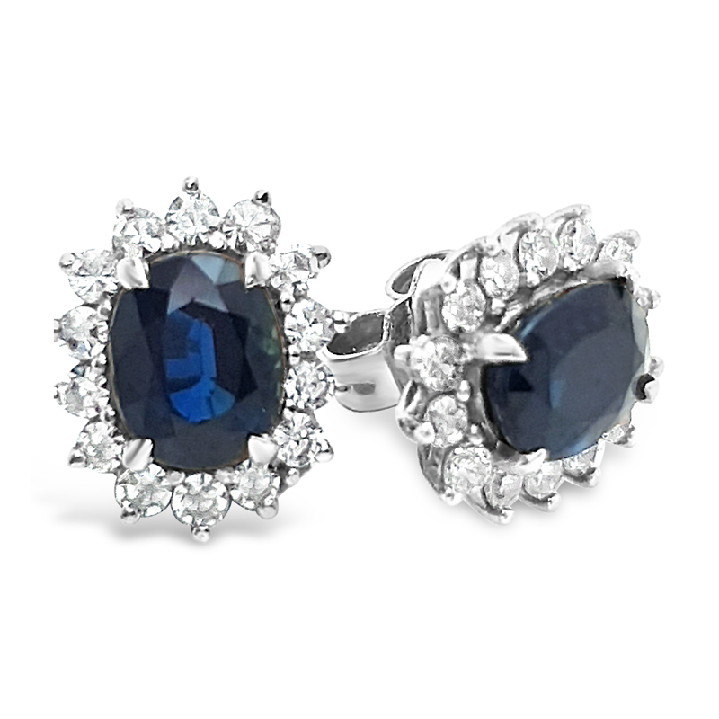 18K White Gold Pair of Earrings with Natural Diamonds and Natural Blue Sapphires.