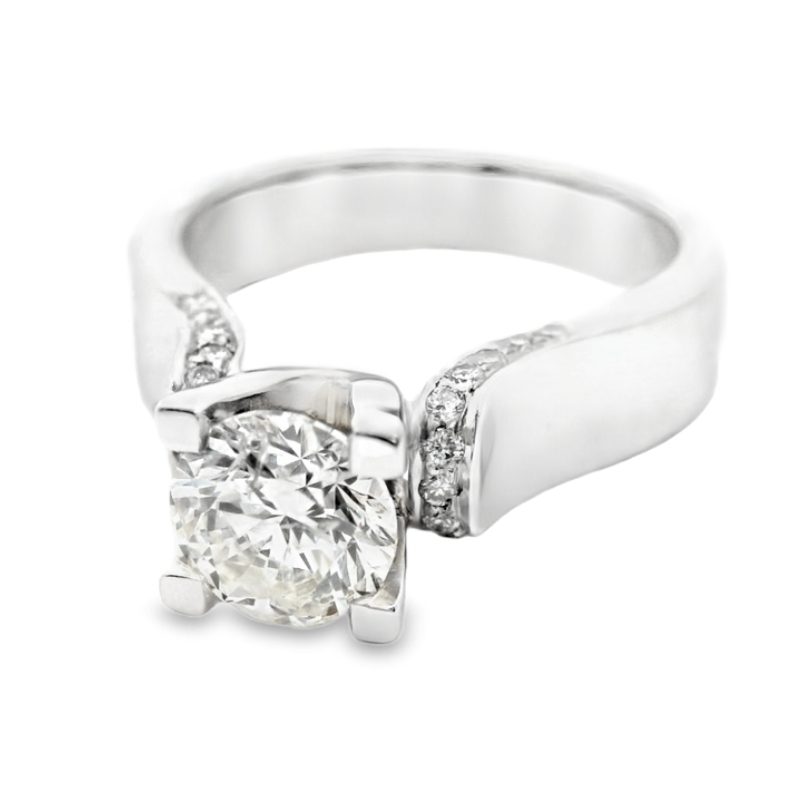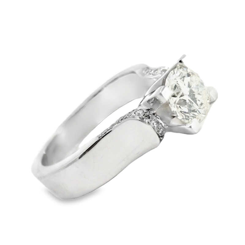 A dazzling diamond takes center stage in this contemporary solitaire ring. Set in a captivating 18K white gold design with diamond accents. The central diamond has a laser inscription and it is certified by the Cyprus Gemological Laboratory with a CGL Report no 1301442.