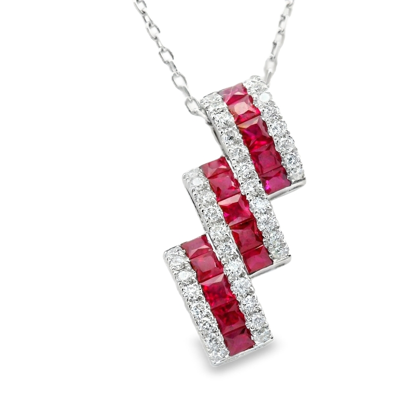 18K Ruby Diamond Pendant | Luxury Gold Step Design GPD056