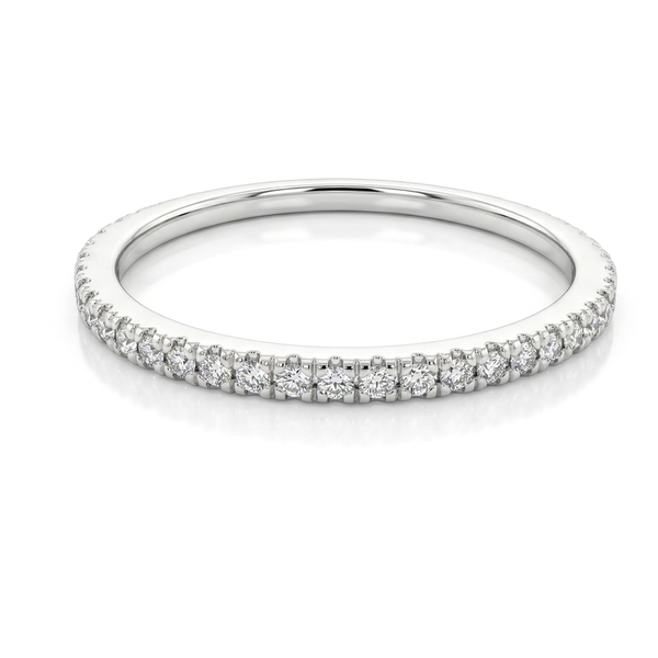 Skilled artisans utilize a precise micro-pave setting technique to hold each diamond securely. This low-profile setting minimizes the visible metal between the stones, resulting in an uninterrupted line of intense sparkle that wraps entirely around the finger. The inside of the band is smooth and polished, ensuring comfortable daily wear.