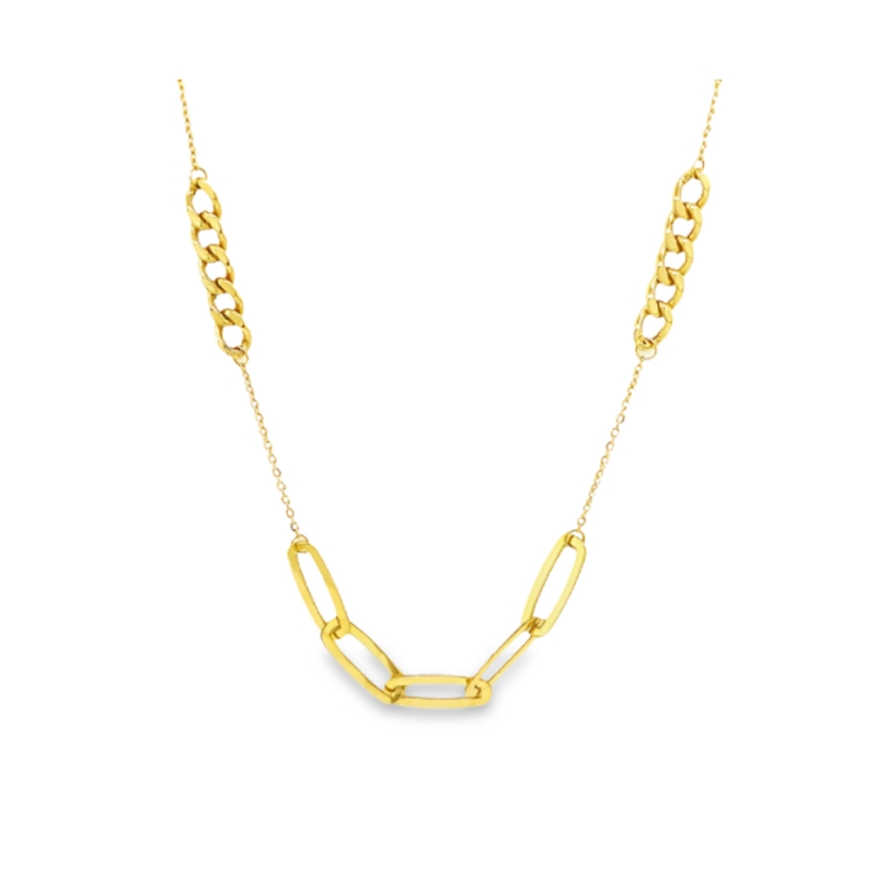 Introducing our captivating 18K yellow gold necklace – a luxurious statement piece designed exclusively for those with an impeccable taste. This exquisite necklace features high quality, gleaming 18K yellow gold, carefully crafted into marvelous interlocking links that gracefully drape around the contours of your neck. The rich warmth of the gold harmoniously blends with the elegant design, exuding a sophisticated charm that is both timeless and versatile.
