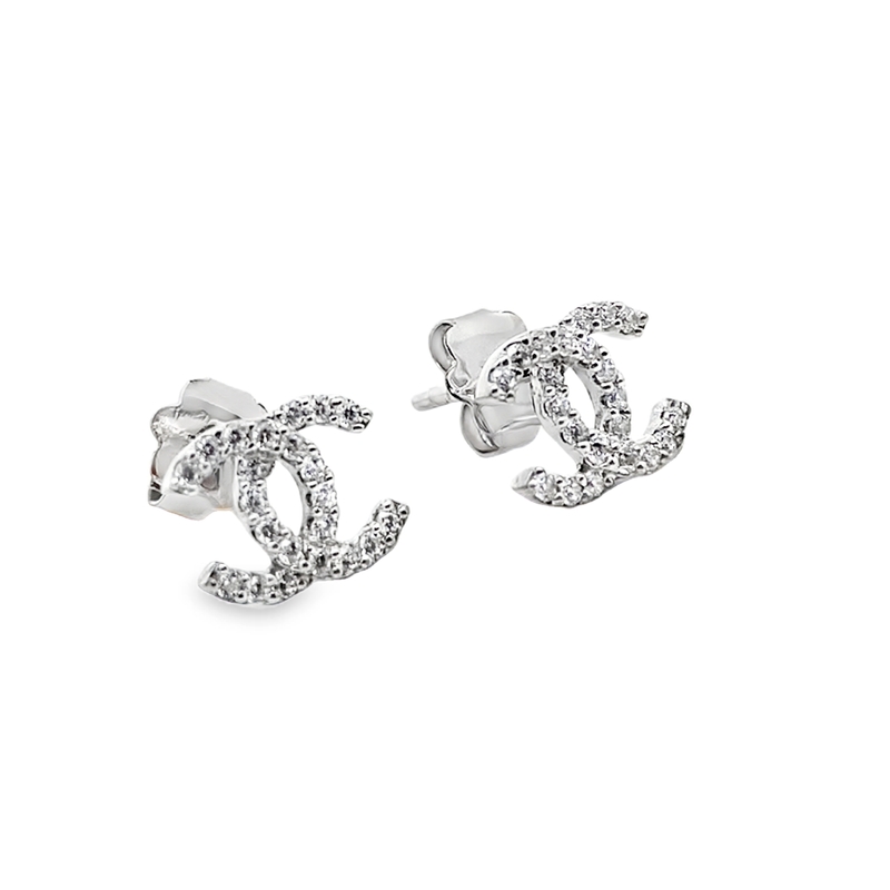 These 9K white gold pair of earrings capture the essence of Parisian chic with their iconic double-C design and dazzling cubic zircons.