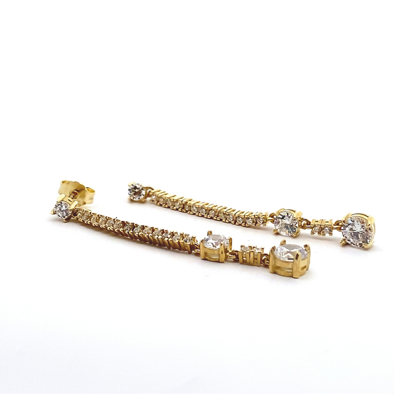 Introducing our exquisite 9K gold chandelier earrings, a true epitome of elegance and sophistication. Crafted with meticulous attention to detail, these stunning adornments are designed to captivate and enhance your natural beauty. Radiating an unparalleled brilliance, each earring is meticulously encrusted with sparkling cubic zirconia stones.