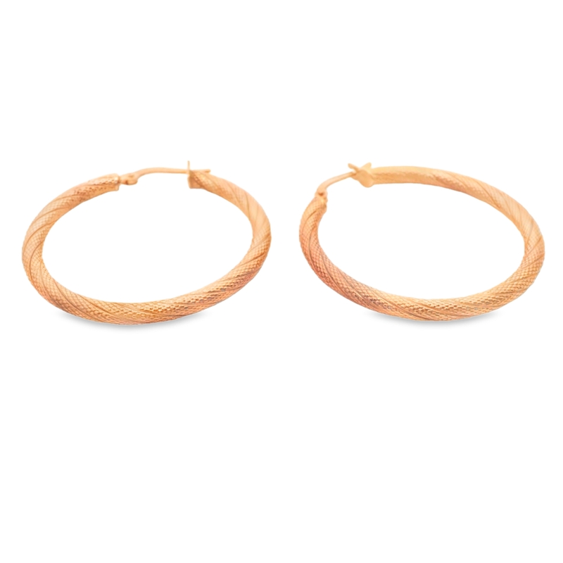 9K Rose Gold Twisted Rope Texture Hoop Earrings GE095