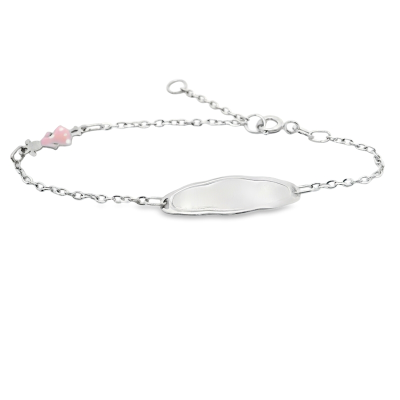 9K White Gold/Child’s ID Bracelet with Pink Girl Charm GB078