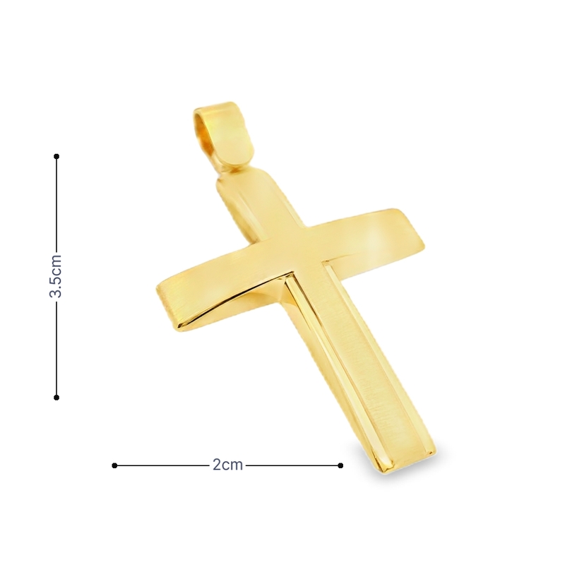 Elevate your expression of faith with this exquisite 9K gold cross, an ideal choice for a christening gift or a statement piece for men. This finely crafted symbol of strength and devotion combines a sophisticated design and exceptional workmanship, resulting in a piece that captures the very essence of divine elegance. With its rich golden hue and brushed finish satin, this cross is a luxurious reflection of one’s spiritual journey.