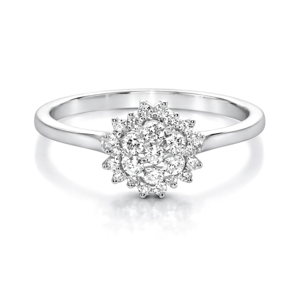 This stunning Floral Diamond Cluster Ring offers high-impact sparkle with a feminine, timeless design. Multiple round brilliant diamonds are meticulously arranged to create the gorgeous, luminous look of a large flower or sunburst. This multi-stone setting maximizes light return and brilliance, offering exceptional value. The entire piece is expertly crafted in rich 18K White Gold, set on a sleek, polished band. It’s a wonderful, high-impact alternative to a traditional solitaire and perfect for those who love a bold, sparkling look. This is a beautiful ring with a 0.28 carats round brilliant cut diamonds. This elegant diamond ring features a round brilliant diamond center stone on an 18K gold band. The center diamond is surrounded by smaller round diamonds, giving the ring its elegant touch. It is an ideal choice for engagement ring, or simply as a gift for a loved one.