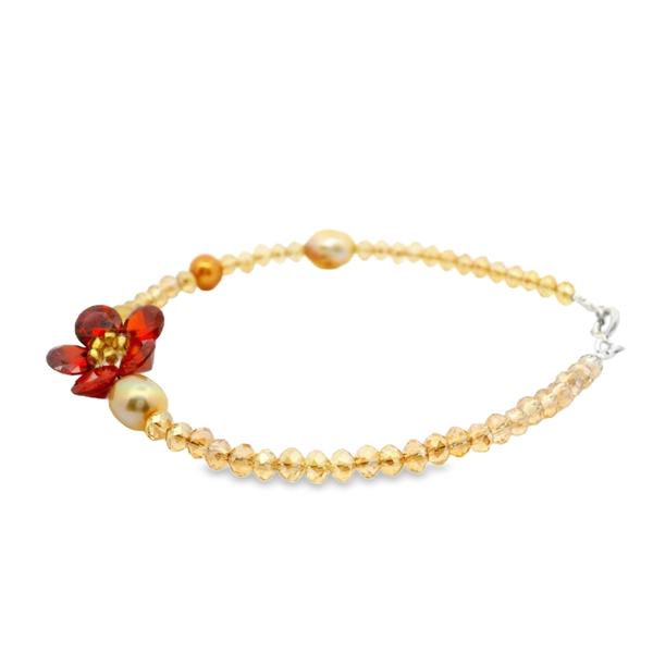 The strand of this Crystal and Pearls Bracelet is meticulously composed of lustrous pearls and faceted golden beads. These pearls exhibit a stunning array of warm tones, including honey gold and creamy champagne. Because each bead is selected for its reflective quality, the bracelet offers a sophisticated shimmer. Furthermore, the refined silhouette balances bold color with delicate textures to wrap elegantly around the wrist.