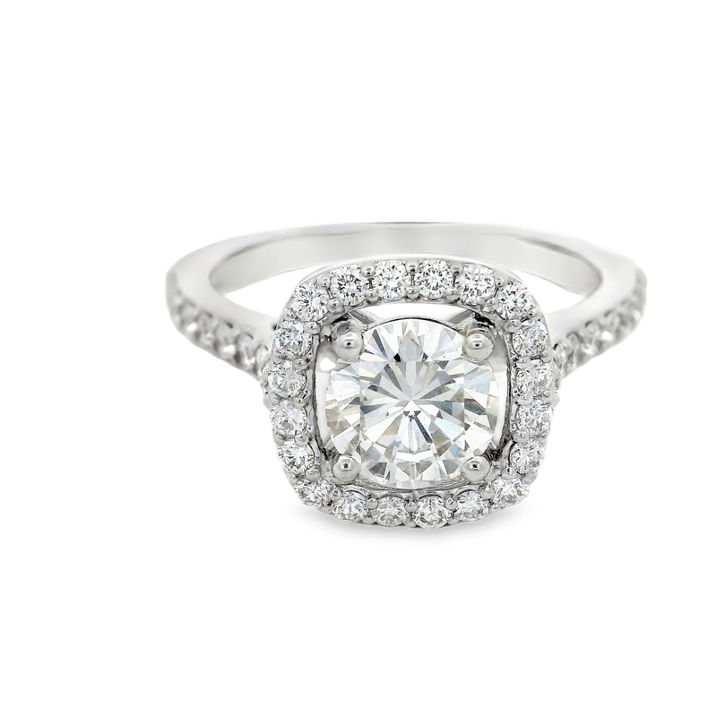 Discover the pinnacle of brilliance with this breathtaking halo engagement ring. Expertly crafted in lustrous 18K white gold, this piece is a timeless symbol of devotion. At its heart sits a magnificent 1.00-carat central diamond chosen for exceptional quality. It has a D color grade—the highest rating for ‘Exceptional White,’ ensuring a pure, icy-white sparkle. Inclusions are microscopic, guaranteeing a flawless appearance to the naked eye. The stone is certified by HRD Antwerp and is laser engraved with its unique certificate number for proof of authenticity. A dazzling halo of smaller diamonds surrounds the center stone, making it look even larger and brighter. These accent diamonds flow down the band, with a total weight of 0.54 carats. This stunning setting provides a modern, luxurious foundation for an unforgettable symbol of love.