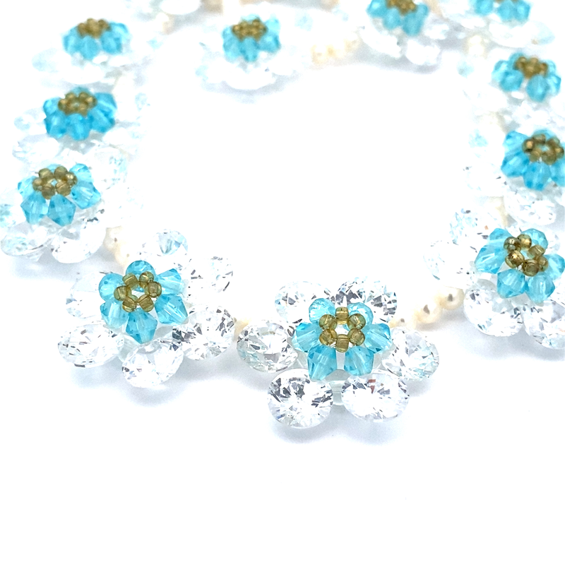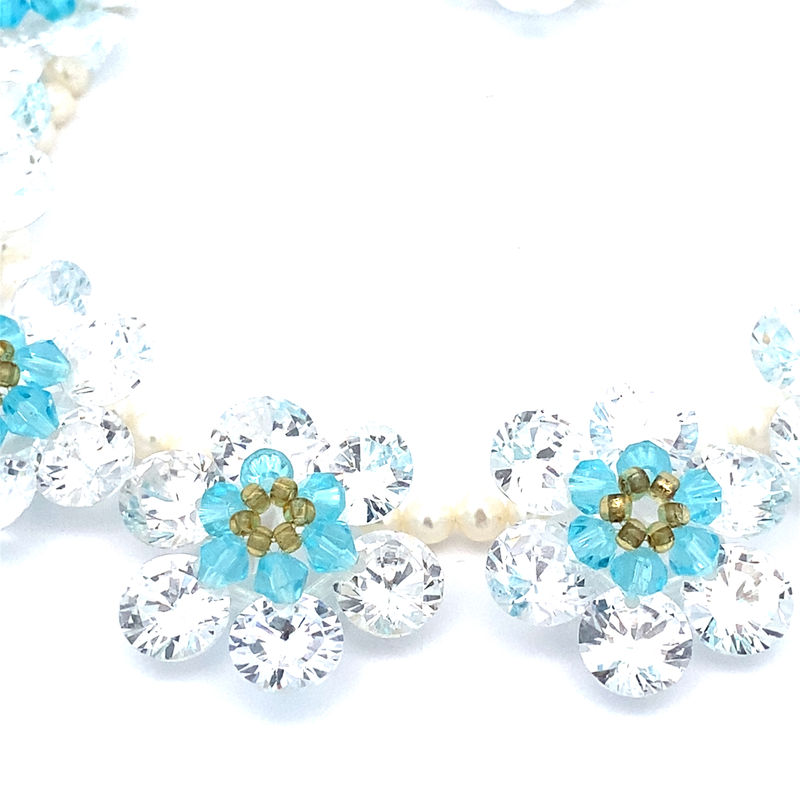 Introducing our exquisite Vibrant Crystals Flower Necklace with fresh water pearls, a dazzling masterpiece from our exclusive Flower Collection.