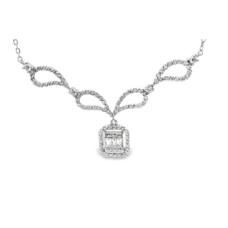 0.66ct VS/F 14K White Gold Diamond Necklace | Flowing Design GPD040
