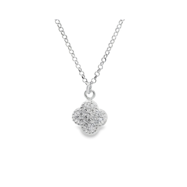 Embrace good fortune and style with this charming Sterling Silver CZ Clover Pendant Necklace. This timeless quatrefoil design is a beautiful symbol of luck and faith, making it a wonderful addition to any jewelry collection. The delicate pendant features a classic clover shape with a slightly domed surface, giving it an artisanal feel. The center is beautifully detailed with shimmering Cubic Zirconia stones, providing a subtle, brilliant sparkle. Adjustable length chain.
