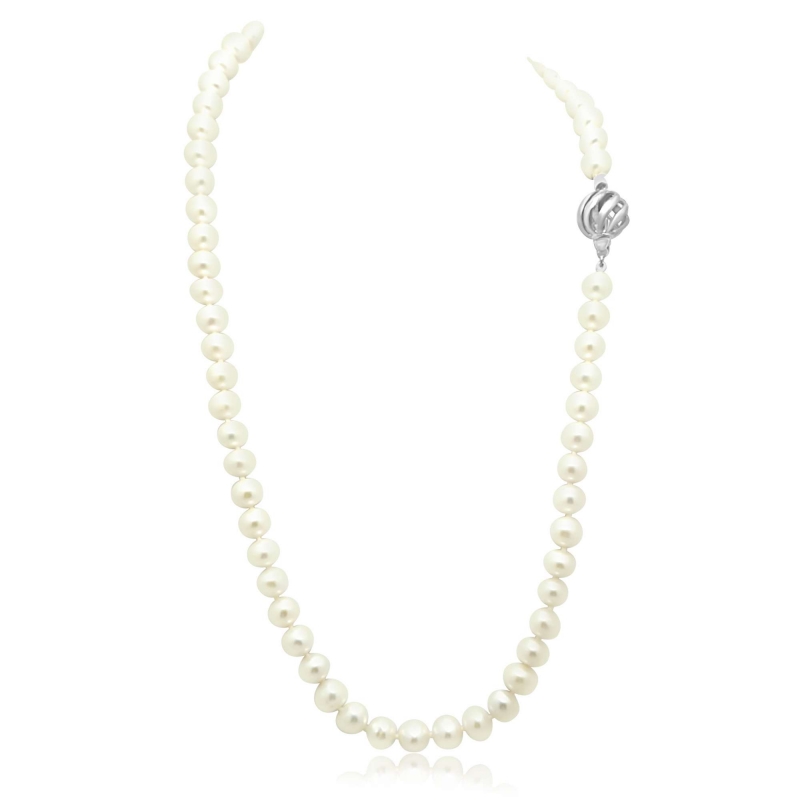 This elegant 45cm freshwater pearl necklace exudes timeless sophistication. Each lustrous pearl, carefully selected for its smooth surface and delicate sheen, is strung together to create a classic strand. The necklace is finished with a stylish fashion clasp, adding a contemporary touch to this traditional piece. This versatile necklace is perfect for adding a touch of refined beauty to any occasion, from everyday wear to special events.