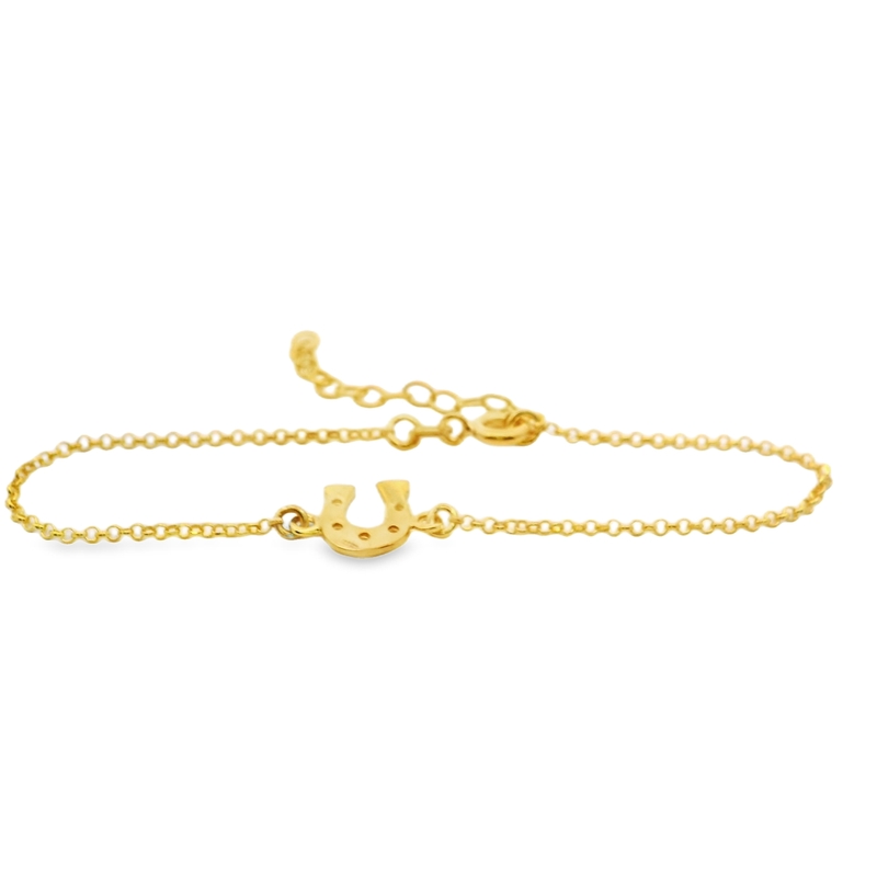 Embrace good fortune and simple elegance with this charming Sterling Silver Horseshoe Bracelet. This dainty piece features a timeless symbol of luck and protection, making it a wonderful addition to any jewelry collection. The design focuses on a smooth, polished horseshoe charm centered on a delicate trace chain. This classic, minimalist style ensures it pairs beautifully with other bracelets for layering or stands alone as a sweet, meaningful accessory. Includes an adjustable extension chain for comfortable sizing.