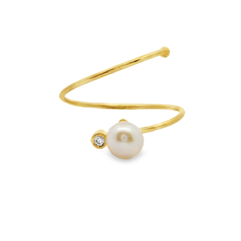 This is a Sterling Silver 925 Wrap Ring, a piece that effortlessly blends modern design with classic sophistication. The ring features a spiral design, allowing for slight adjustability and comfortable wear. This unique ring features a sleek, minimalist spiral band that wraps gracefully around the finger, culminating in a beautiful pairing of a lustrous white pearl and a dazzling Cubic Zirconia (CZ) accent. It is the perfect piece for those who appreciate modern style with a classic twist.
