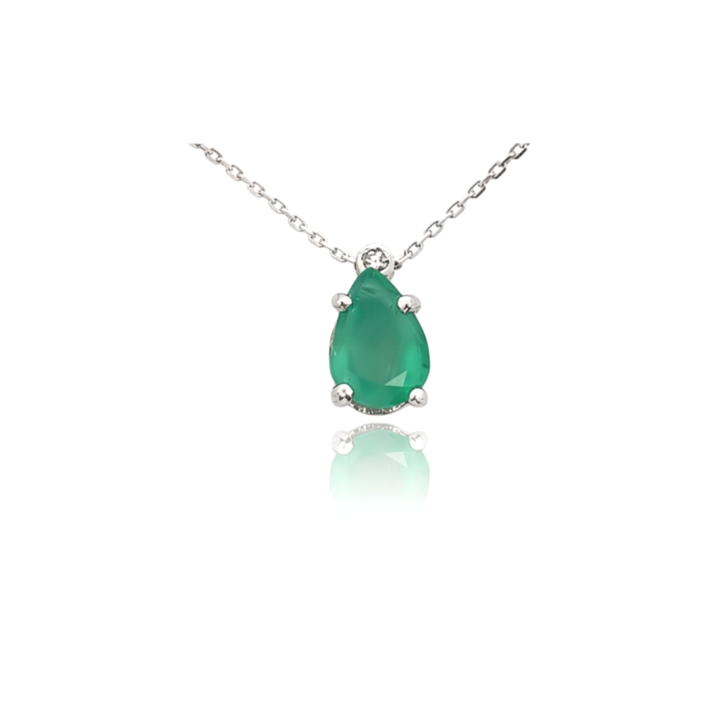 The pendant is the focal point, featuring a pear-shaped (also known as teardrop) Emerald. The Emerald has a rich, saturated green color and it appears to be relatively transparent, allowing light to pass through and enhance its brilliance. The Emerald is set in a simple, four-prong setting. There is a small diamond accent at the top of the setting where the pendant loop attaches. The necklace features a thin, delicate cable chain 40cm long in 18K white gold. The necklace has an elegant and classic style. The simplicity of the design focuses attention on the beauty of the Emerald. It’s a versatile piece that could be worn for both formal and informal occasions.