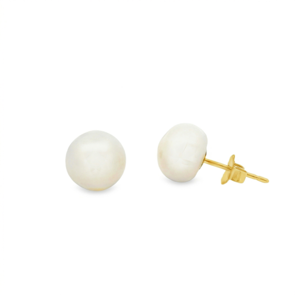 These classic Natural Freshwater Pearl Stud Earrings are a staple for any jewelry collection, offering a timeless aesthetic that transitions effortlessly from day to night. Each earring features a hand-selected, lustrous white pearl with a smooth surface and a soft, captivating glow. The generous 9mm dimensions provide a bold yet sophisticated presence on the ear, making them a versatile accessory for any wardrobe.