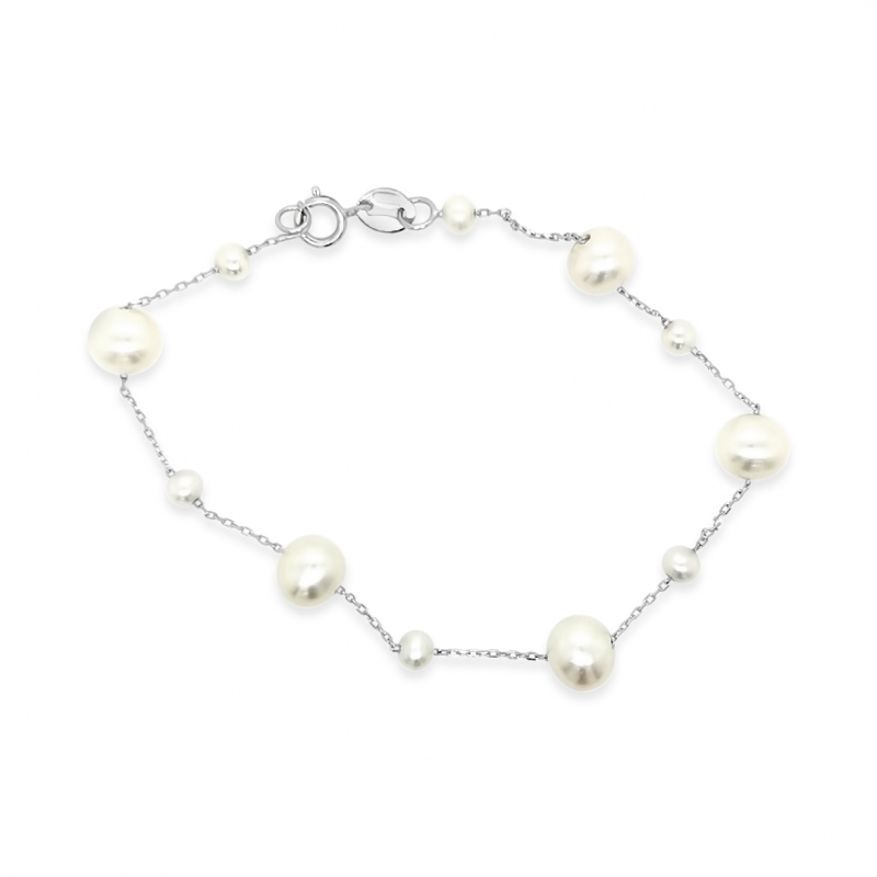 Sterling Silver 925 Bracelet with Rhodium Plating and Natural Fresh Water Pearls.