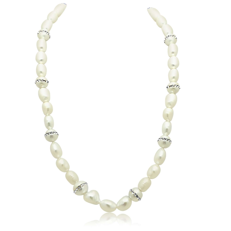 Natural Fresh Water Pearl Necklace 45cm long with Swarovski.