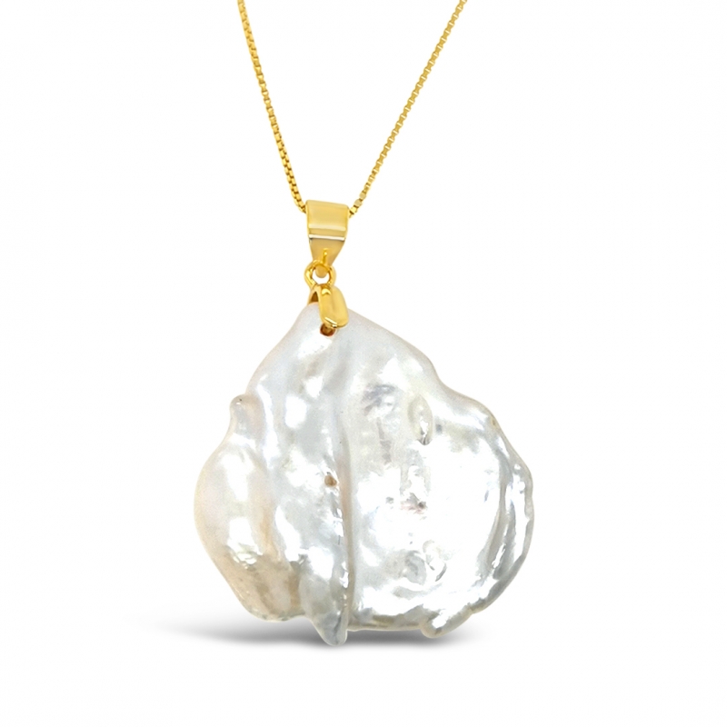 Sterling Silver 925 Pendant with Yellow Gold Plating and a Natural Fresh Water Pearl.
