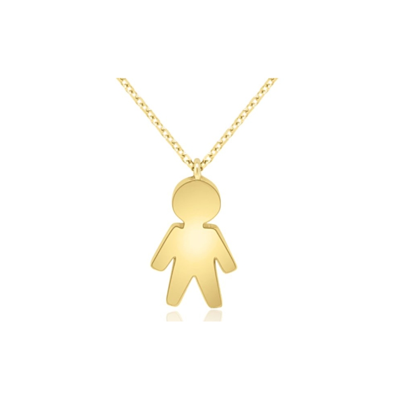 Celebrate the little man in your life with this beautiful 9K Yellow Gold Boy Figure Pendant Necklace. We craft this timeless piece from genuine 9-carat gold. The necklace features a solid, high-polish silhouette pendant of a little boy. A delicate 9K gold chain holds the pendant. This piece is designed to be a cherished keepsake. It makes the perfect sentimental gift for a new mother or a memorable push present. It’s an ideal way to keep a child or grandchild close to your heart every day. Want more meaning? You can add an extra layer of personalization with a hand-engraved initial or date on the back.