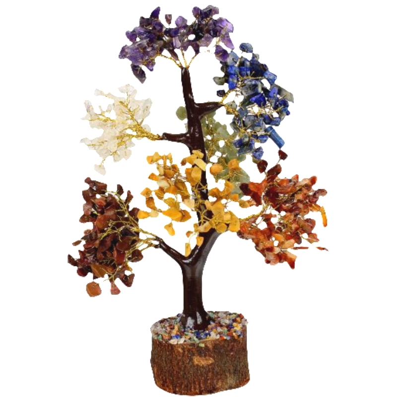 This handcrafted “Tree of Life” crystal tree is a beautiful decorative and spiritual object. Its branches, made of twisted metal wire, hold small, polished gemstone chips that act as leaves. The stones are carefully arranged to represent the seven chakras, each with a different crystal. The tree is supported by a natural-looking base crafted from a raw piece of wood, giving it a rustic and earthy feel. Beyond its decorative appeal, this crystal tree is often used in Feng Shui and crystal healing practices. It is believed to symbolize growth, stability, and abundance. The stones are thought to bring positive energy, balance, and healing properties to any space.