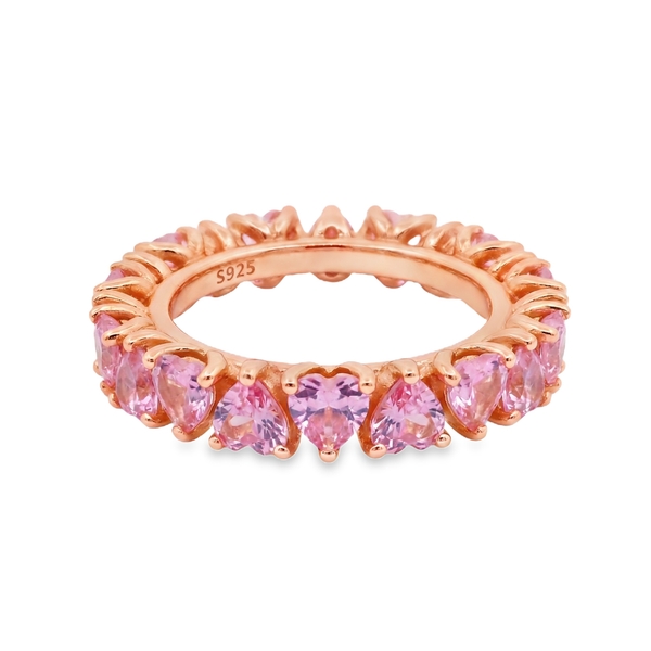 Celebrate your unique style with the Silver Heart Eternity Ring, a stunning symbol of modern elegance. Our skilled artisans craft this piece from high-quality 925 sterling silver. We apply a warm rose gold plating to every surface of the band. This finish creates a romantic, glowing shine that beautifully complements the stones. Furthermore, the plating protects the silver from daily tarnishing and scratches.
